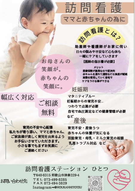 和歌山で初の、母子訪問看護を広めたいと活動しています。